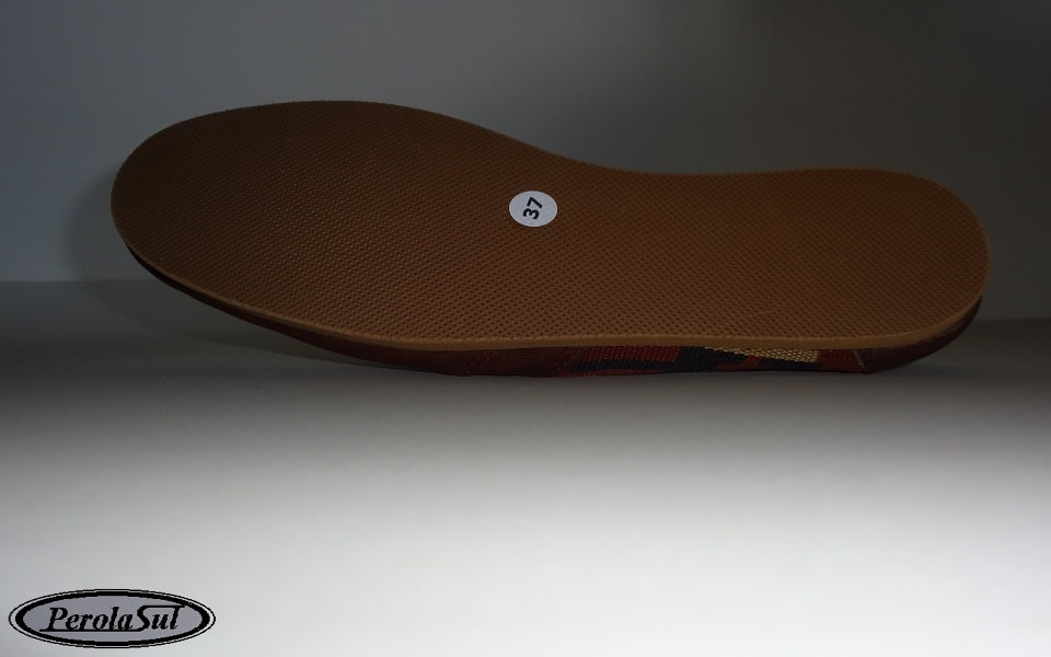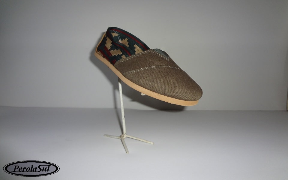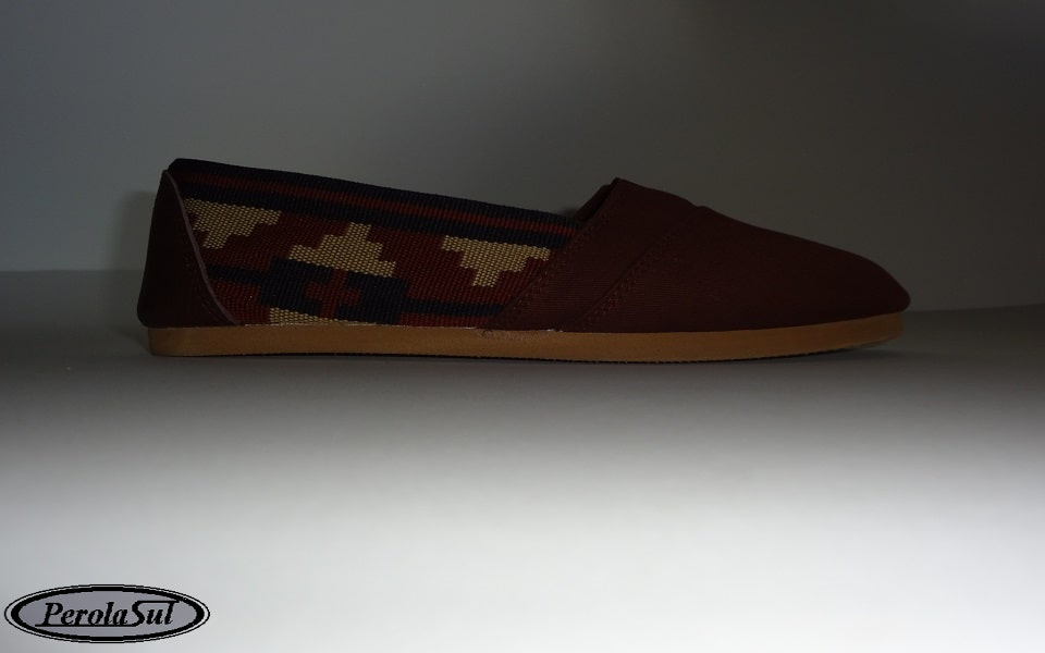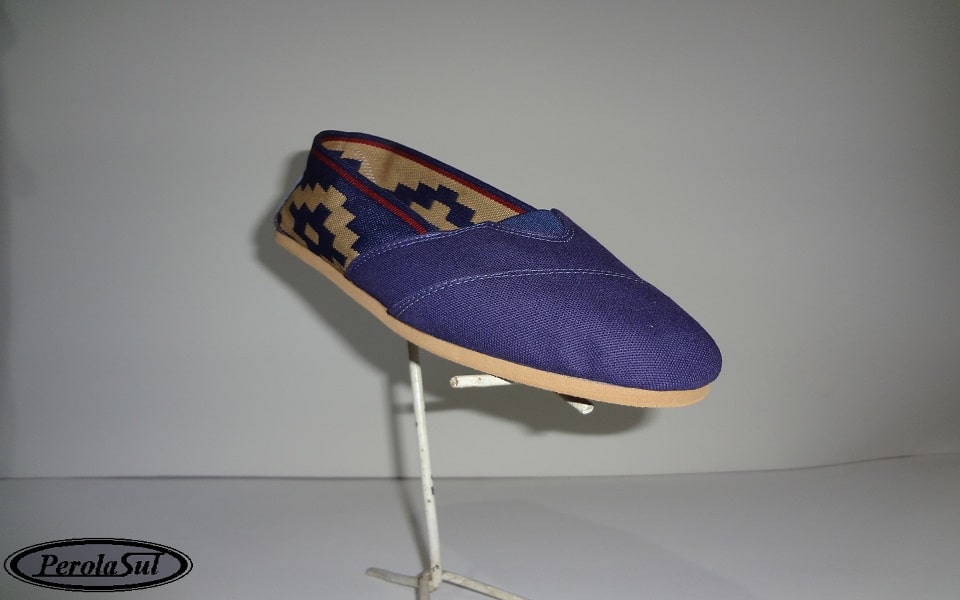 Alpargatas em lona com solado de EVA e fita pampa lateral e traseira.